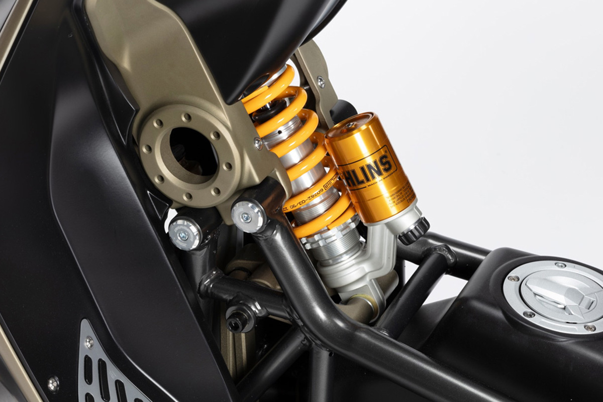 Jedna od najposebnijih karakteristika ovog modela je nekonvencionalan prednji ovjes koji zamjenjuje klasičnu vilicu. Italjet koristi vlastiti sustav zglobnih poluga koji omogućuje izuzetno stabilno i precizno upravljanje.